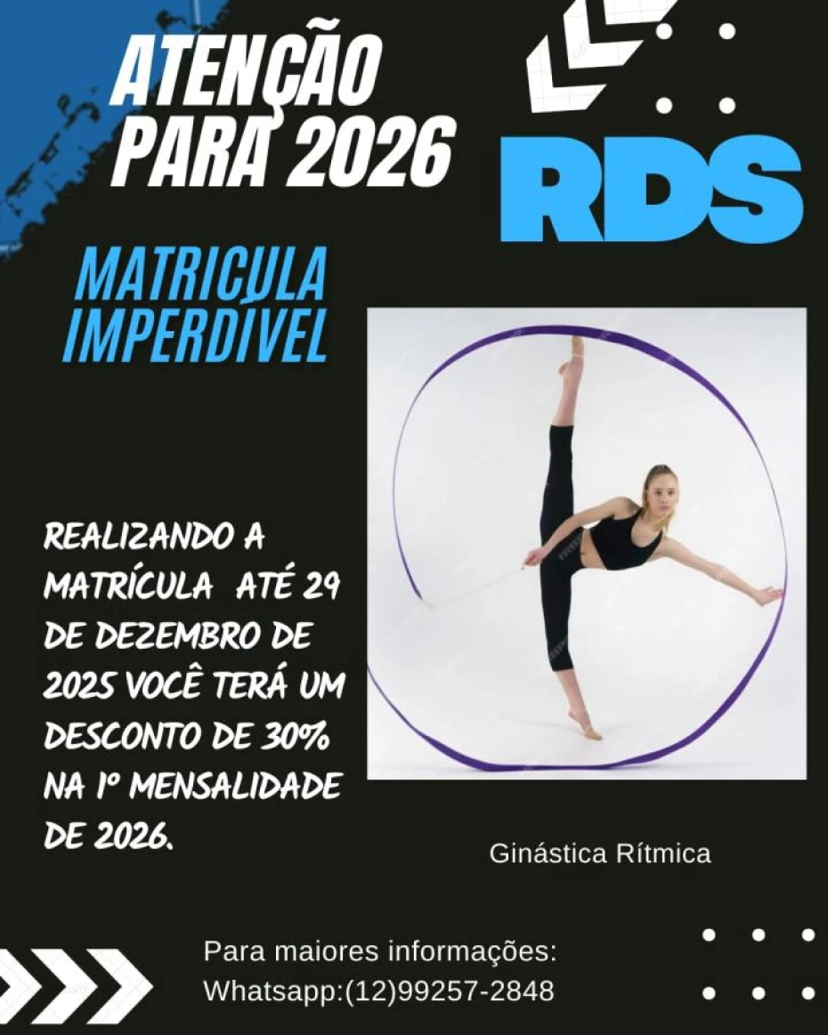 Instituto de Ginástica RítmicaInstituto de Ginástica Rítmica em Taubaté. Aulas de ginástica rítmica e ballet infantil para meninas a partir de 4 anos em Taubaté. Movimento, arte e disciplina com a experiência da professora Roberta de Deus no Instituto RDS. Agende uma aula!